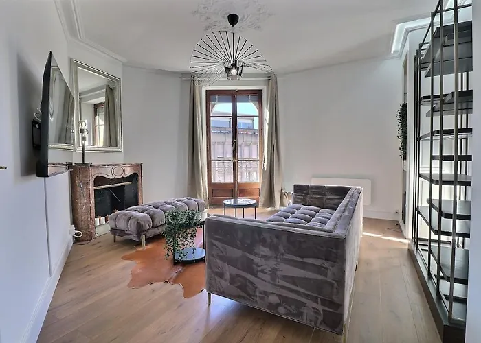 La résidence spacieuse se trouve à 2 km du Jet d'eau de Genève et à 2,1 km du parc de La Grange. L'appartement est situé dans la localité de "Plainpalais" de Genève. La Maison Tavel est à environ 19 minutes à pied.
